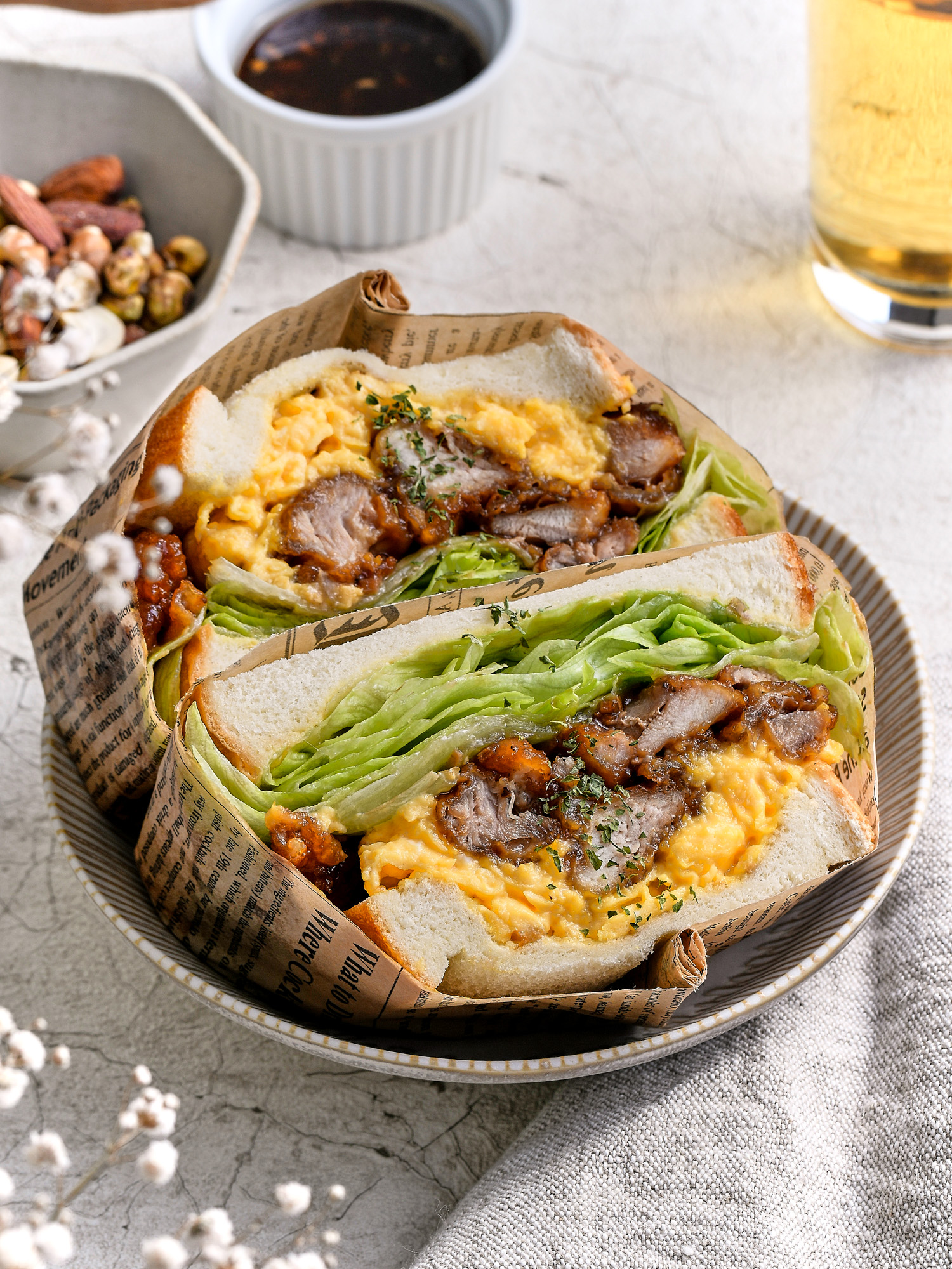 〜赤ワインの香りをまとった、秋のごちそうカフェサンド〜 カリッと香ばしく揚げ焼きした鶏肉に、赤ワインの深みを感じる甘辛だれをたっぷりと絡めて。とろりと濃厚な卵とシャキッとしたレタスを重ねれば、ひと口ごとに食感と香りが重なり合い、口いっぱいに秋の味わいが広がります。ほんのり効かせたディジョンマスタードが全体の味をきゅっと引き締め、濃厚な旨みの中に上品な余韻を残してくれる一品です。季節の風を感じながらゆっくり頬張りたくなる、カフェのごちそうサンドに仕上がりました。 材料(2人分/サンド2個分) ◎ 揚げ焼きチ ...