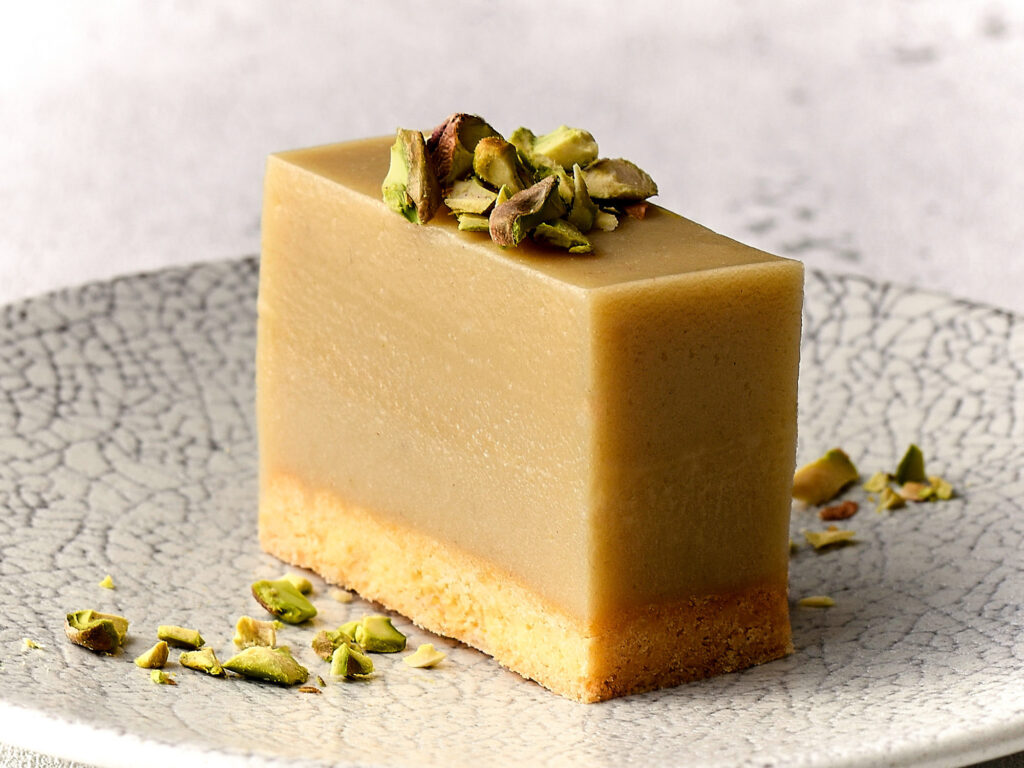 - 型から外し、表面に刻んだピスタチオを散らす。